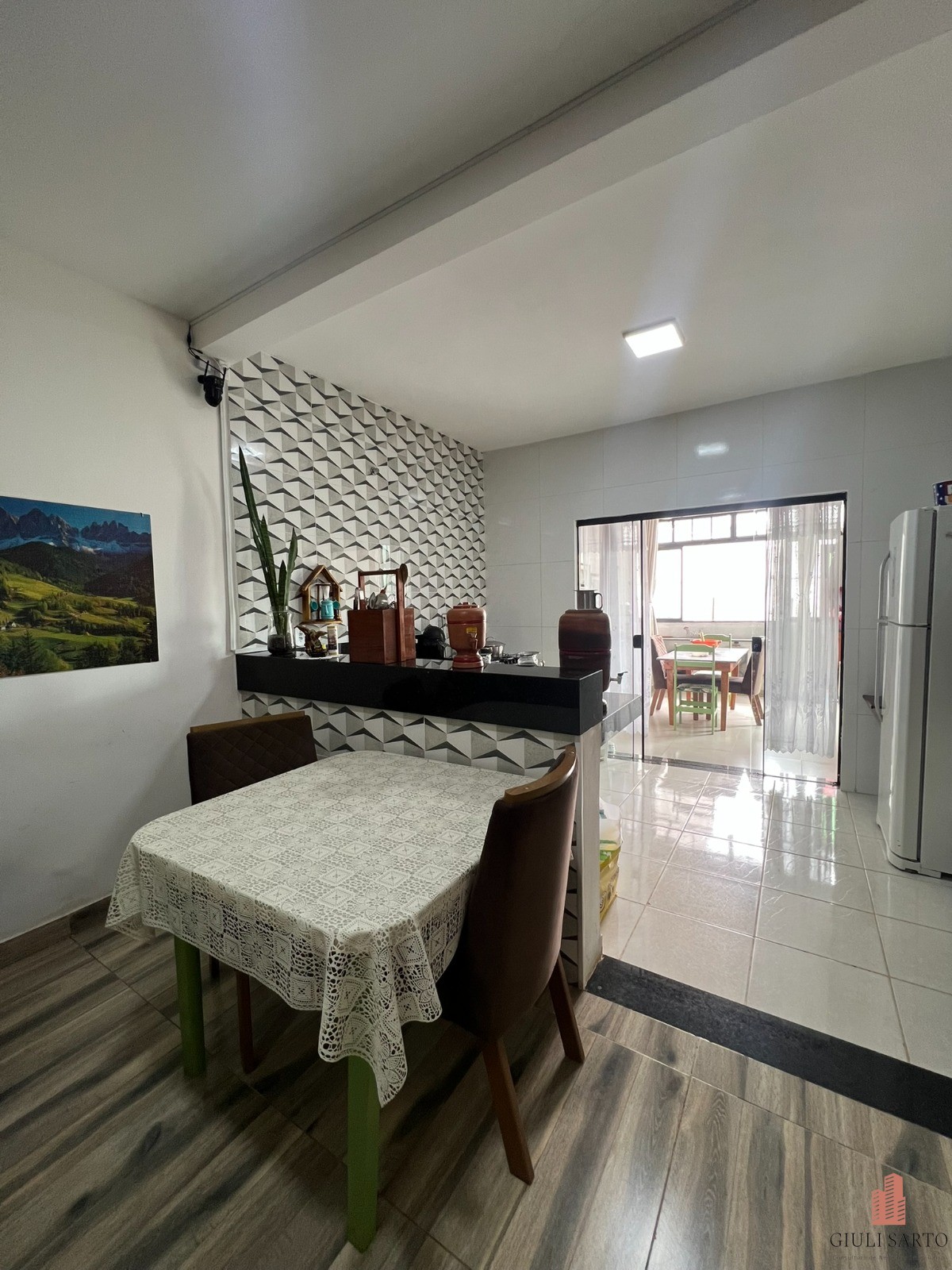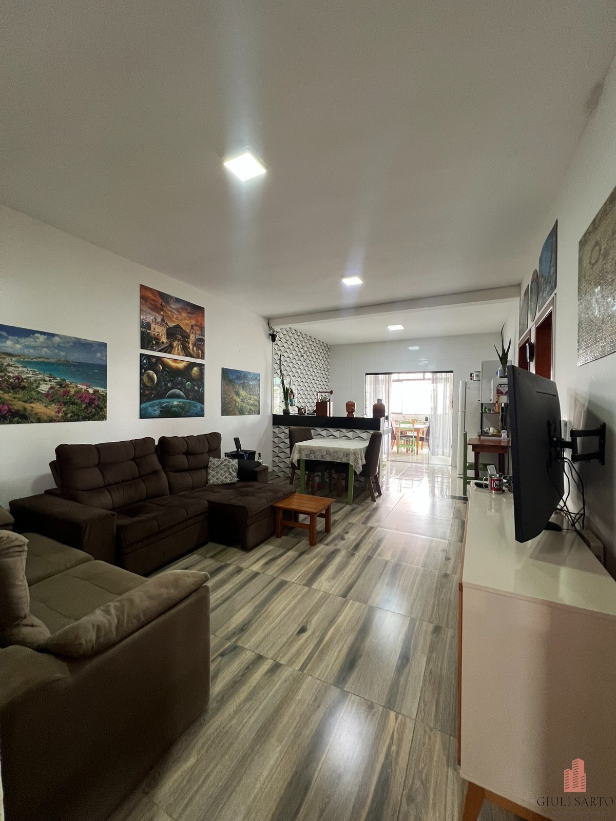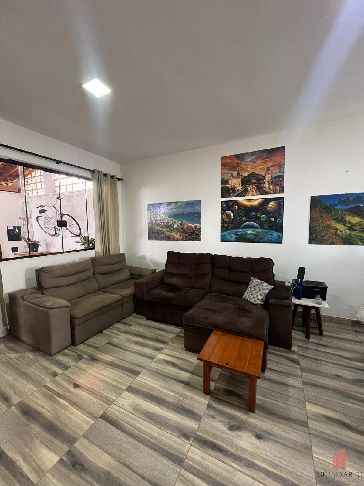 Conceito aberto Sala e cozinha integradas com lavabo Banheiro social 2 quartos Área gourmet Quintal gramado 2 vagas cobertas