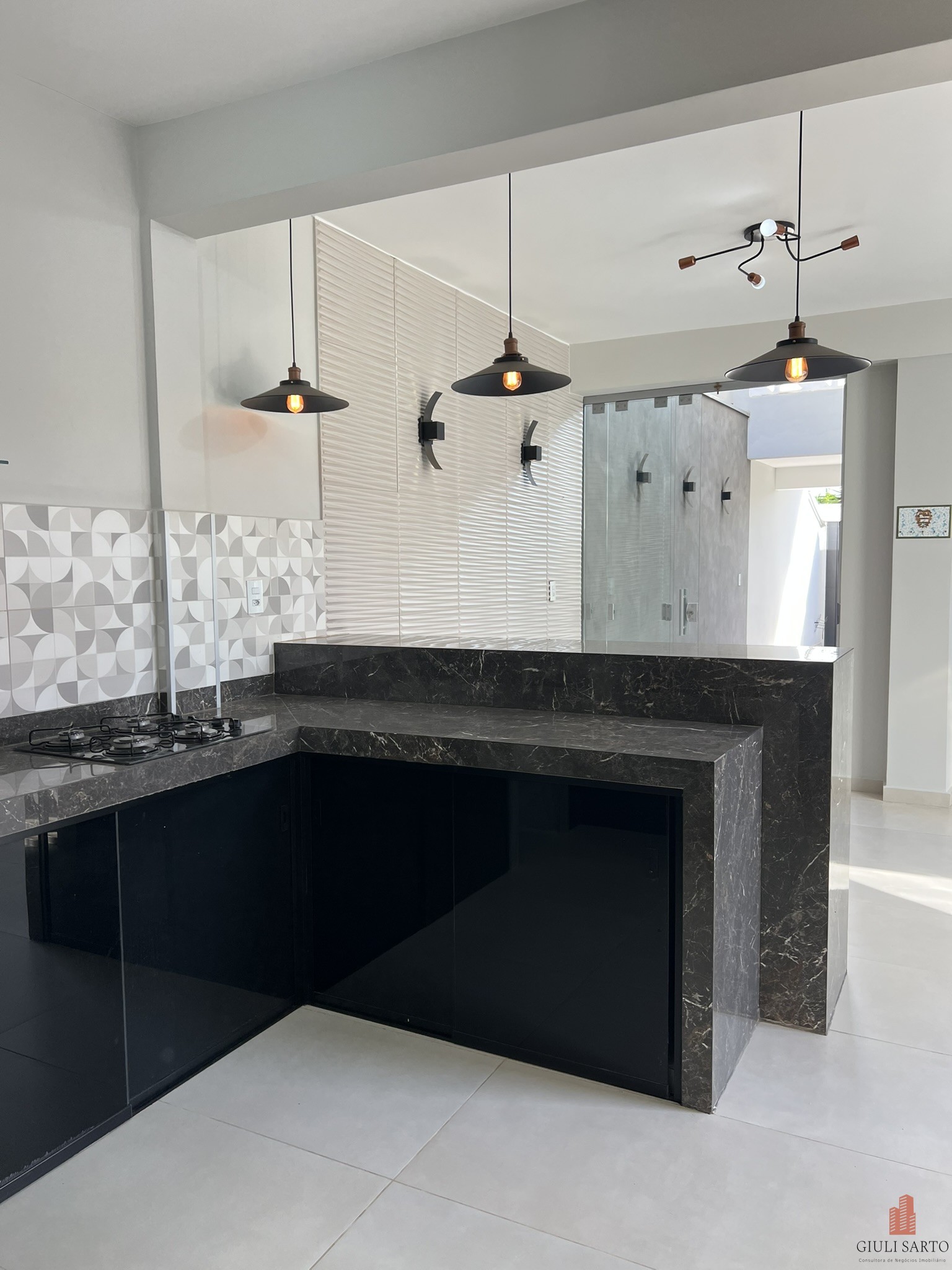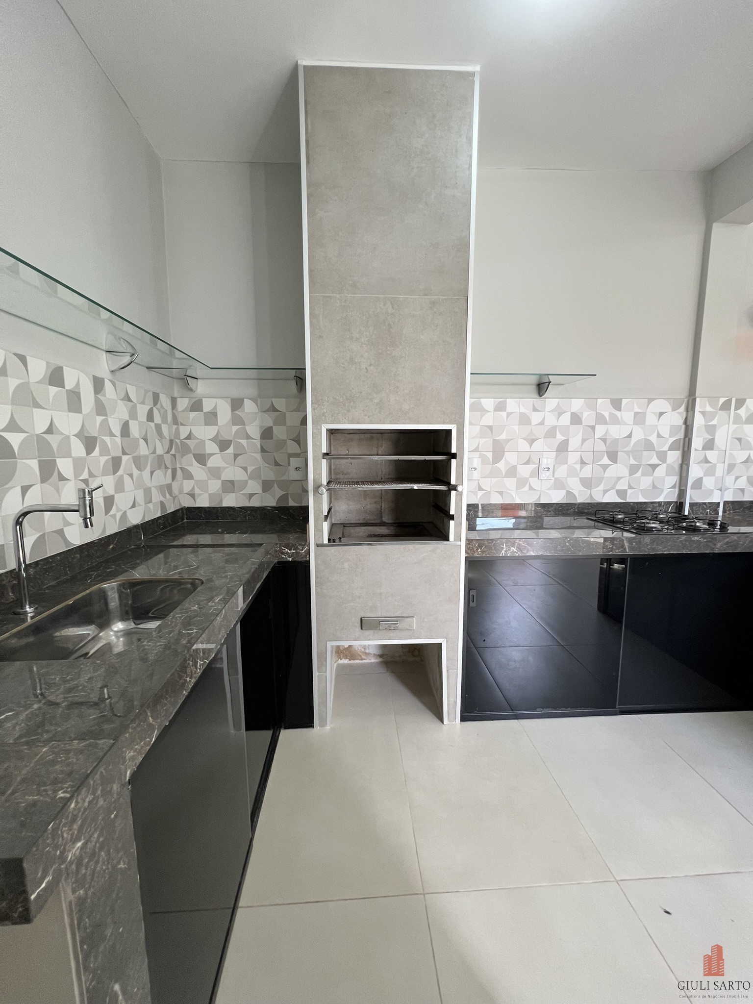 * Cozinha equipada com cooktop, armários e despensa