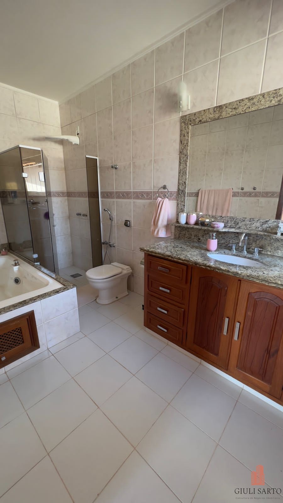 4 quartos com armários embutidos sendo uma suíte com banheira de hidromassagem. Banheiro social .