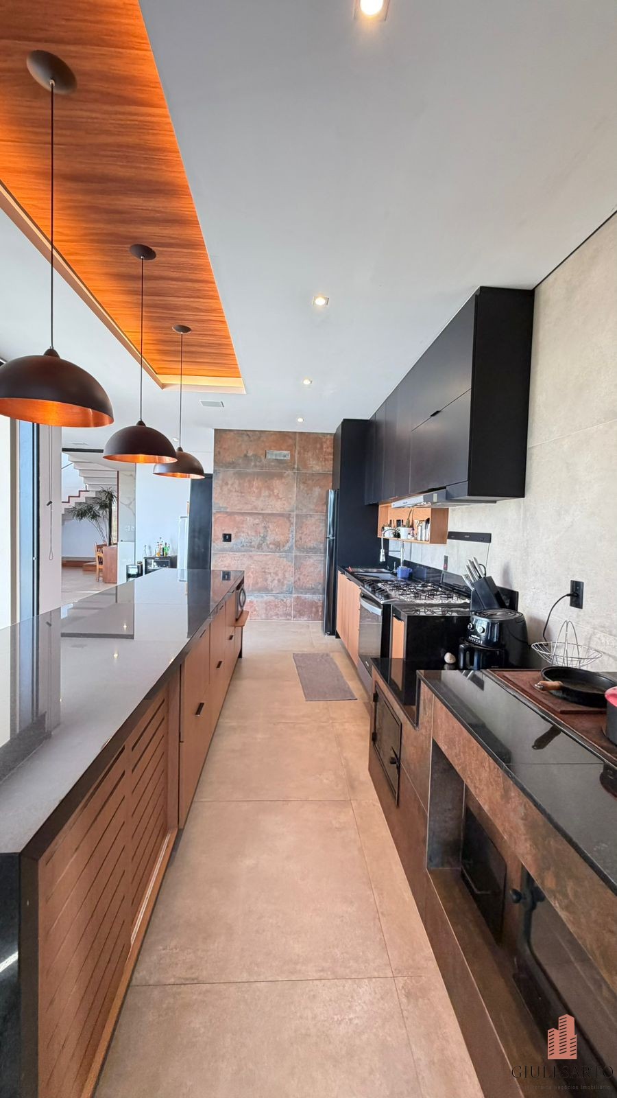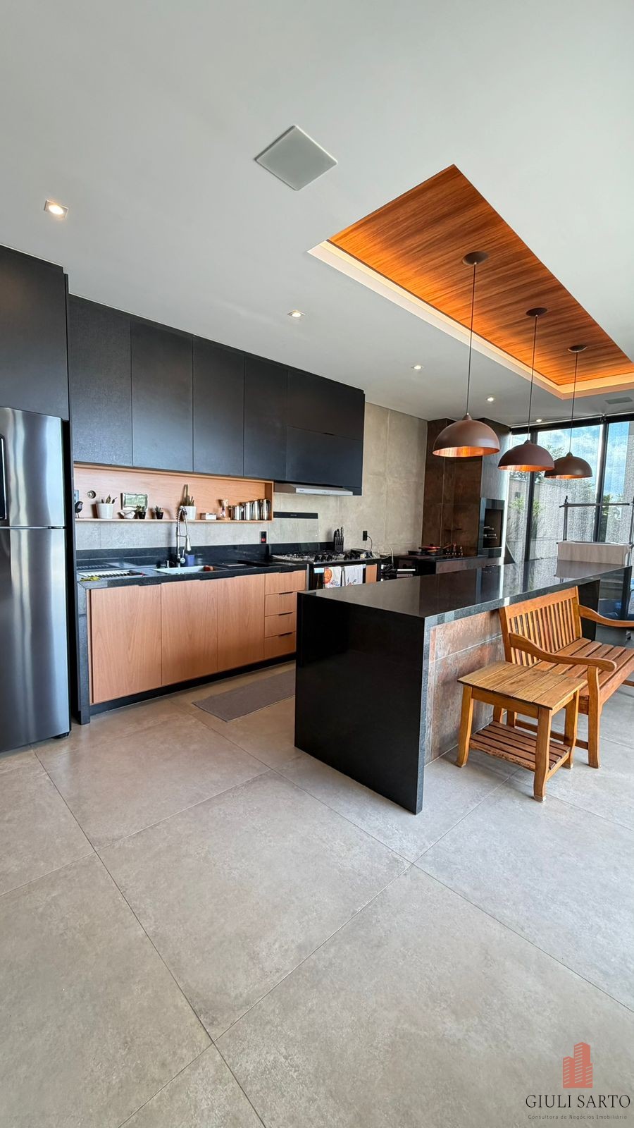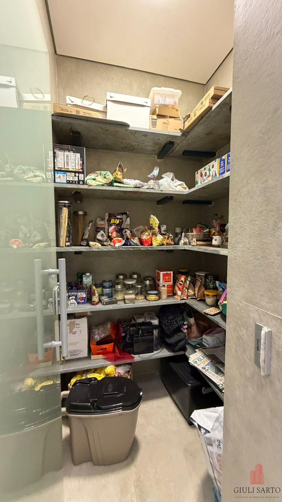 Cozinha americana planejada com despensa.