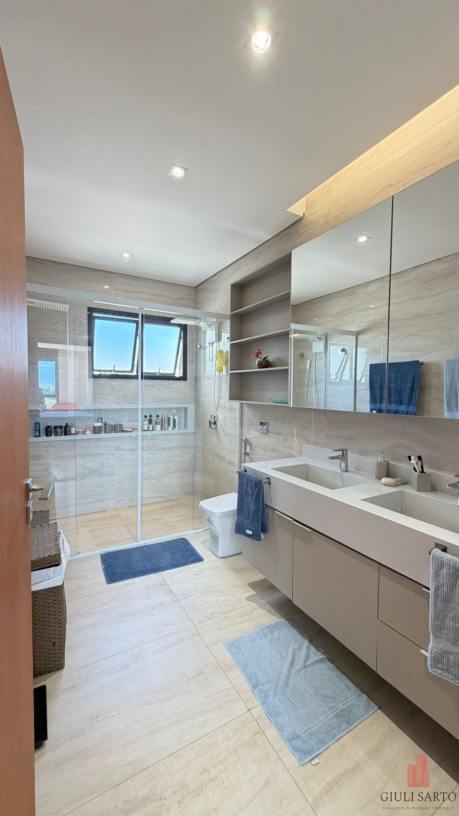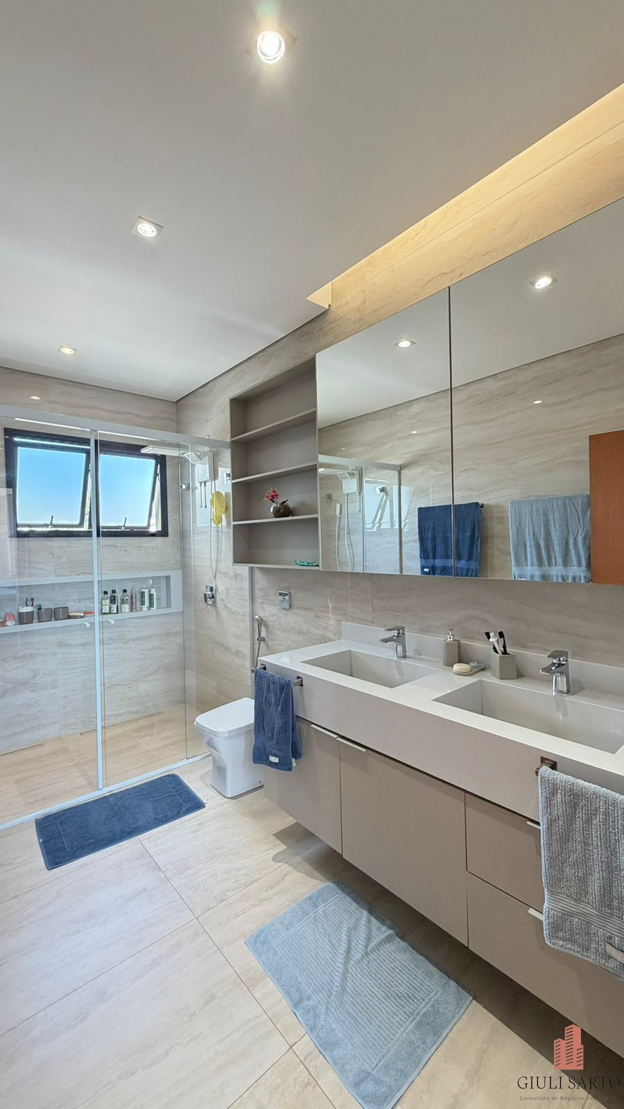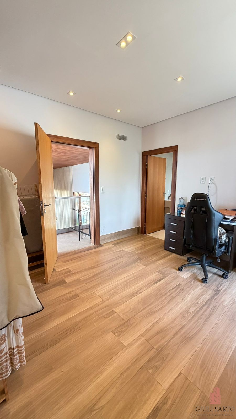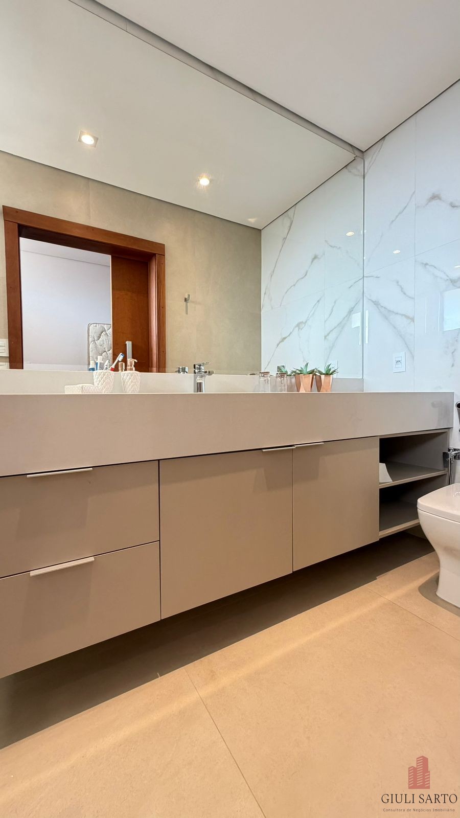 Mezanino e 3 suítes, sendo suíte master com closet planejado, duas cubas e dois chuveiros. Suíte com closet e varanda ampla.