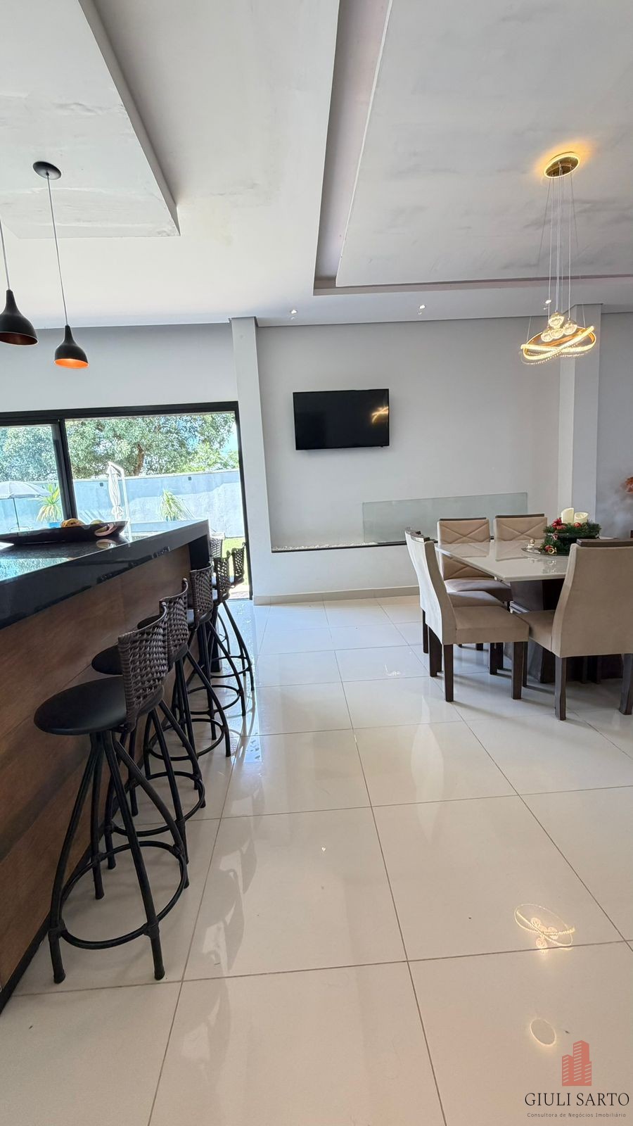 * Sala ampla em conceito integrado (estar, jantar e cozinha planejada)