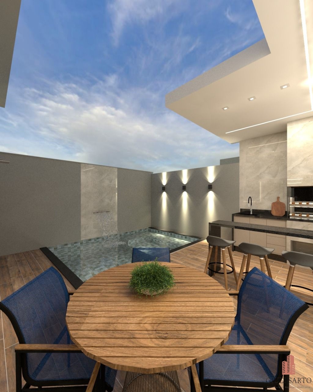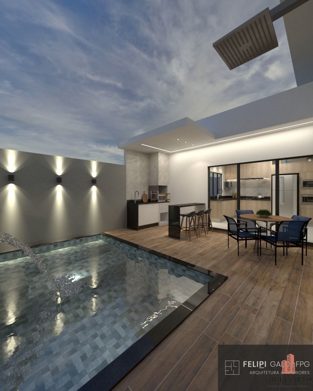– Área gourmet com churrasqueira e spa ou piscina;